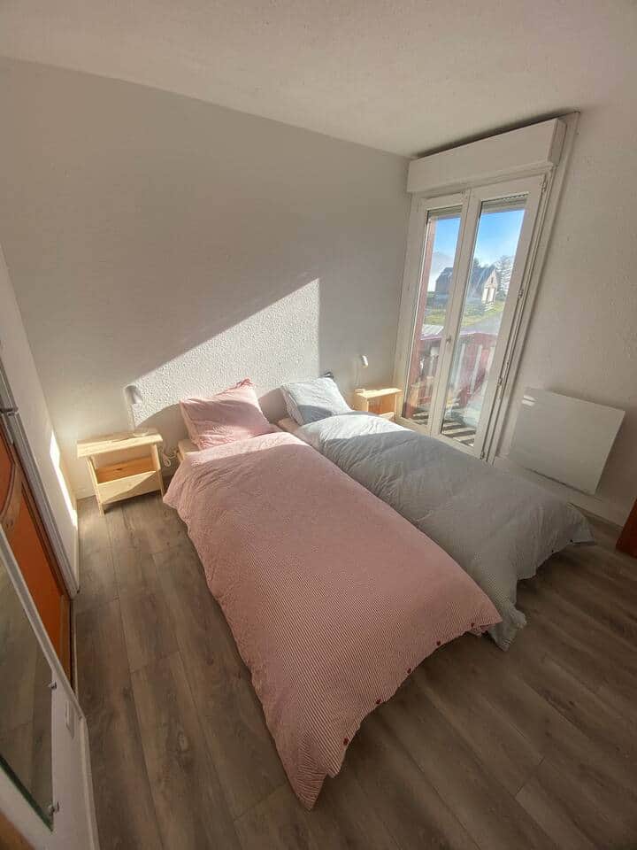 La chambre "pour les enfants" comporte deux lits simples, un lit superposé et un dressing. Il est possible d'empiler les deux lits simples pour gagner de la place.